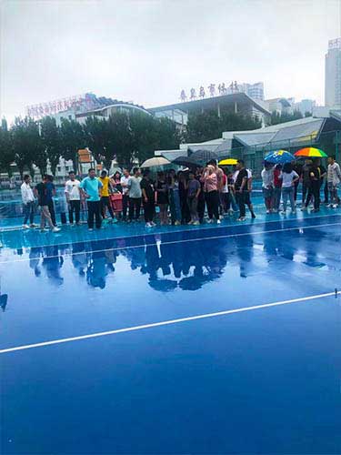 因為下雨的原因,所以拔河比賽選在場地外優(yōu)先進行。
