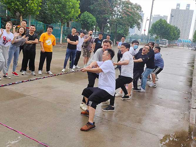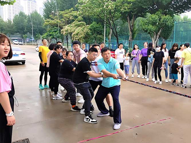 哨聲響起,比賽一觸即發(fā)!大家團結(jié)一致努力拼搏著!有的緊握麻繩,咬牙使勁;有的扎穩(wěn)腳步,不可撼動;有的身體向下傾斜,鉚勁拉繩……大家的勁往一處兒使,心往一處兒聚。全神貫注的眼神、奮力拉扯的身影,無不彰顯了員工們的意志。