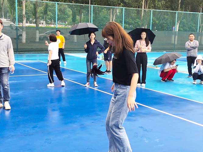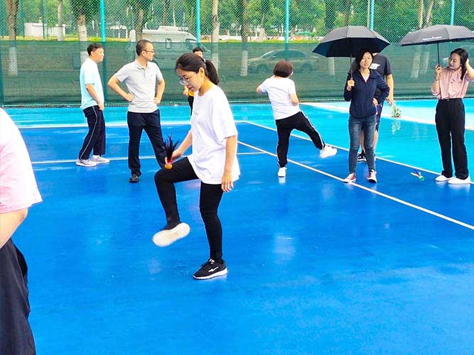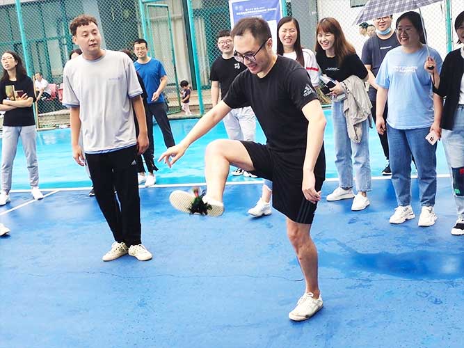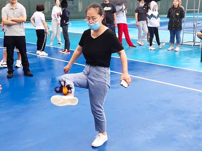這是為女生們準備的個人賽,同理,男生也可以挑戰(zhàn)。參加者每人一次機會,踢毽子在不間斷、不落地的前提下,個數(shù)*多者勝利。并且冠*可以直接去選一個獎品拿走。