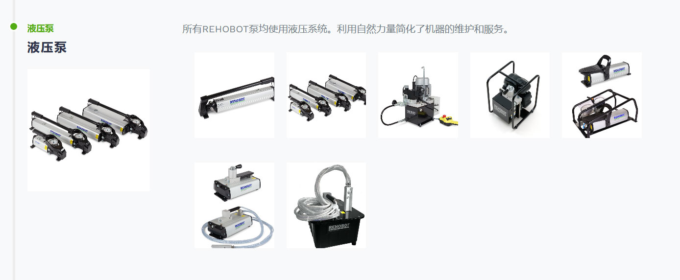 REHOBOT的聲譽建立在所生產產品的質量上。REHOBOT的目標是不*在產品的質量和可靠性方面,而且在以客戶為*的全方面支持和服務結構方面都超越您的期望。REHOBOT工業(yè)液壓產品已在全*許多不同的應用和用戶中使用。加工,采礦,鋼鐵,建筑,鐵路和造船是REHOBOT服務的眾多行業(yè)中的一些。REHOBOT提供的產品和設備包括液壓手動泵,氣動液壓泵,電動液壓泵,鋼制和鋁制氣缸,推拉套件,液壓拉拔器,吊具,切削工具和專用工具套件。