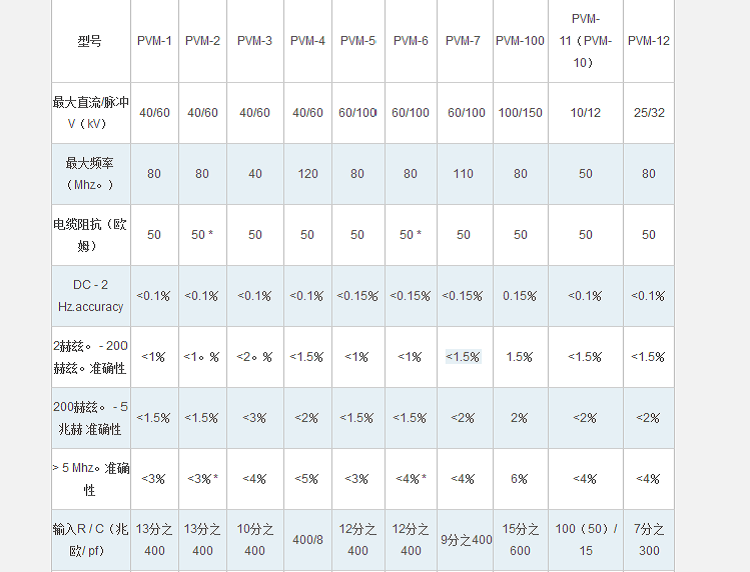 北*星制造兩種主要類型的高壓探頭– 專為便攜性和寬帶寬設(shè)計的PVM系列,以及專為長壽命和高精度而設(shè)計的獨立式VD系列。兩種類型的探頭均可與1兆歐輸入示波器(標(biāo)準)一起使用,或與各種輸入阻抗的儀表一起使用(訂購時指定儀表類型)。探針也可用于OEM應(yīng)用的“裸露”版本。